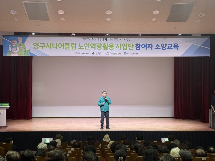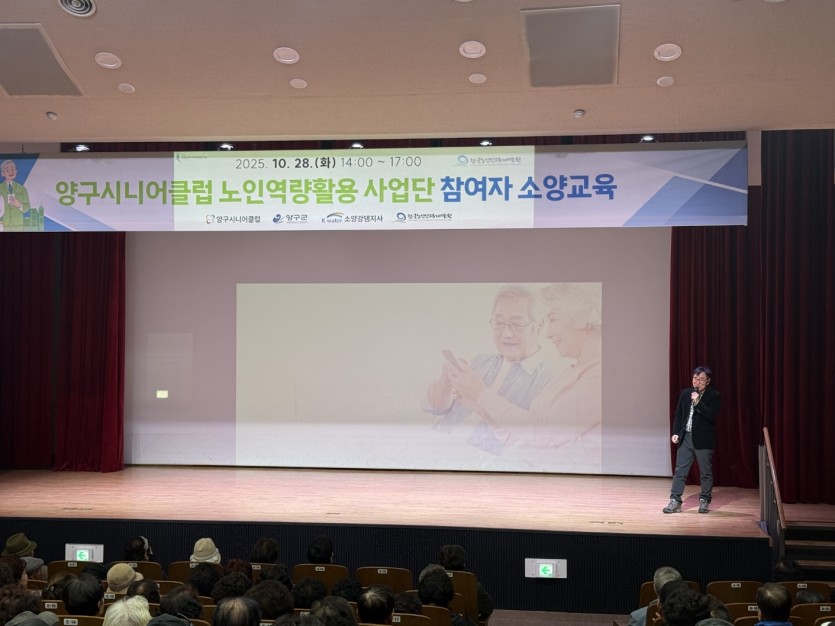 노인역량활용 사업단(뽀송이빨래방, 실버활동도우미, 시니어금융업무지원, 청춘서포터즈, 기타시설지원, 안전순찰단(읍), 안전순찰단(면), 파크골프러닝메이트, 장난감도서관, 커피박새활용) 참여자 소양교육이 28일 오후 양구문화복지센터 공연장에서 진행되었다. 이번 교육은 한국노인인력개발원 소속 여상원 강사의 개인정보 보호, 스마트폰 사진 촬영 교육과 자체 보이스피싱 예방 교육으로 이루어졌으며 현장에서 발생할 수 있는 사고를 사전 예방하고 지역사회 일자리 활동에 필요한 기본 소양을 함양하기 위해 마련됐다.