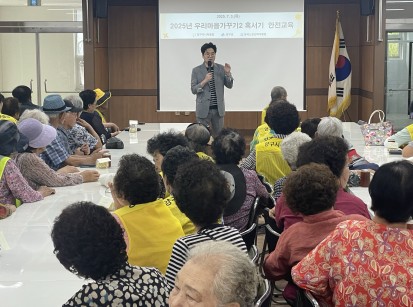 우리마을가꾸기5 사업단 참여자 혹서기 안전교육이 7월 9일 해안면 복지회관에서, 11일 동...