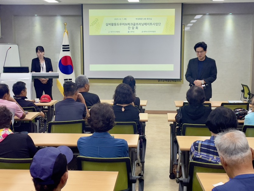 실버활동도우미, 파크골프 러닝메이트 사업단 참여자 간담회가 7일 오후 양구여성회관 3층 회의실에서 진행되었다.